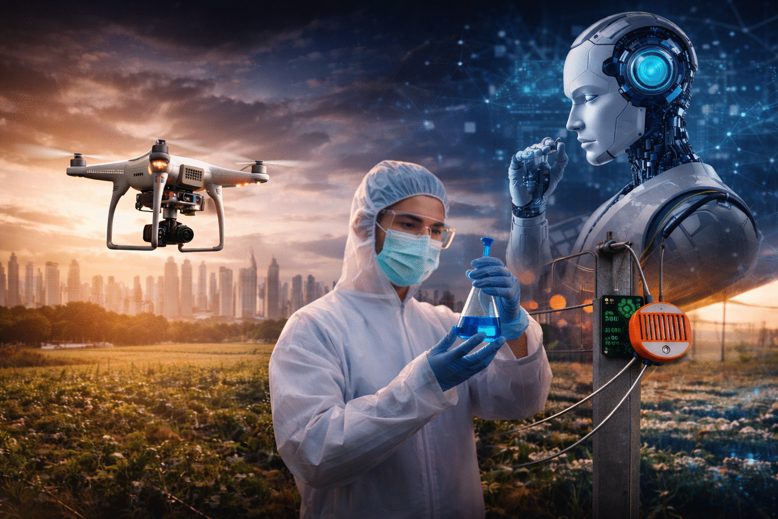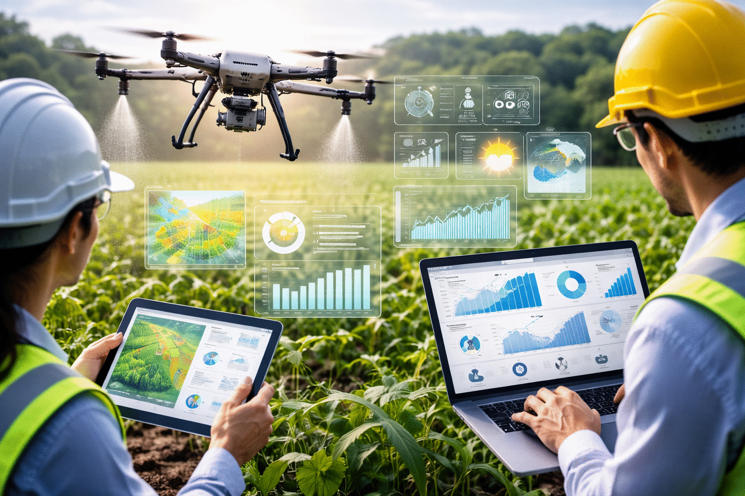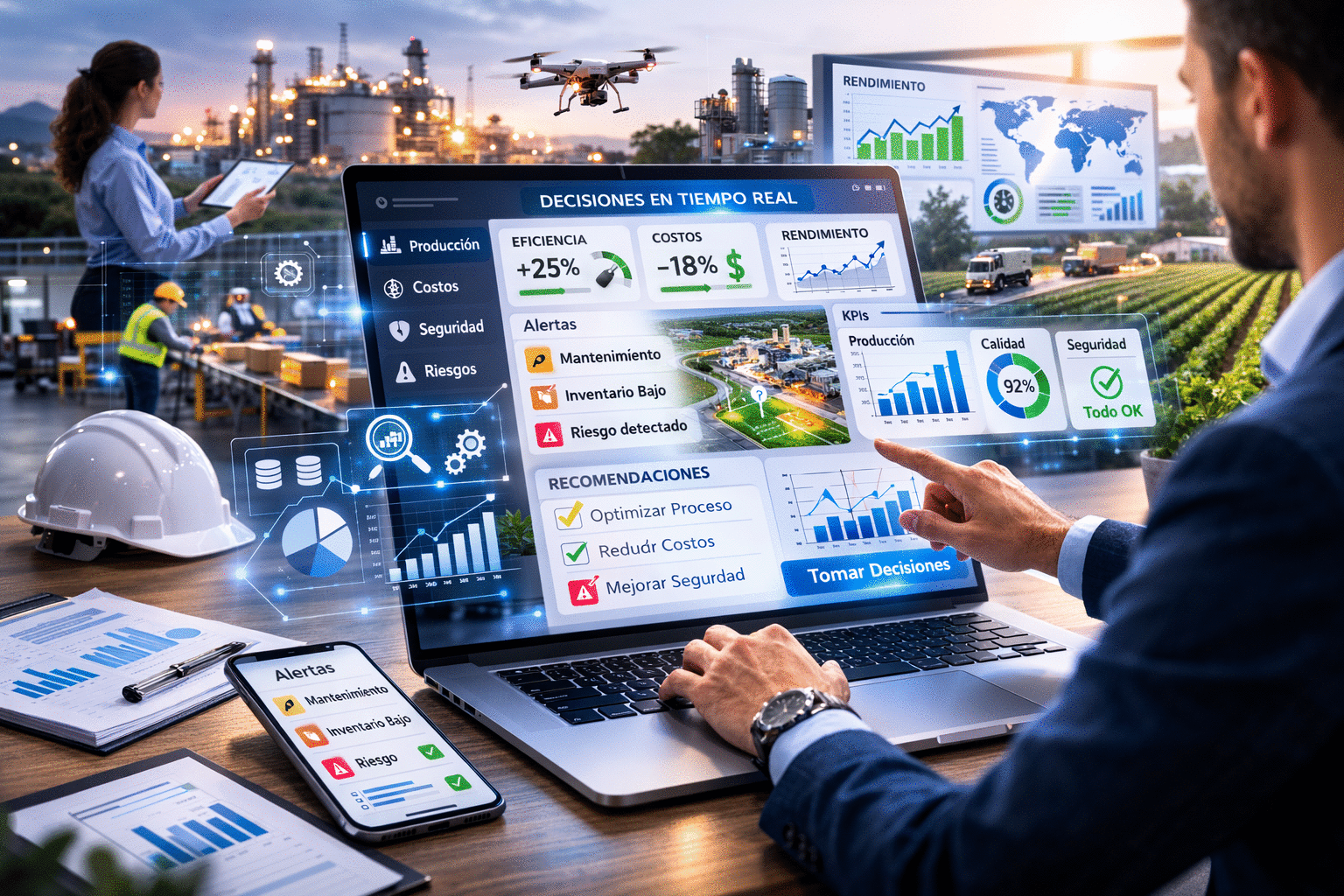 Implementamos tecnologías como drones, sensores y sistemas automatizados para capturar datos reales de tu operación. En muchos casos, también ejecutamos procesos físicos con esta tecnología, reemplazando tareas manuales por operaciones más seguras, precisas y eficientes.